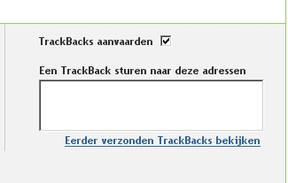 Ik zie echter wel dat er nog te weinig gebruik gemaakt wordt van Trackback. Ik kom soms postings tegen met inhoud van mij waar geen trackback gebruikt wordt naar mijn posting. Terwijl het juist handig is. Maar ik heb ook begrepen uit het stukje van Anette dat niet in iedere software een standaard schermpje zit waarin je de trackback kunt opgeven. Ik merkte bij het trackbacken ook dat er vaak diverse manieren gebruik worden afhankelijk van de software. Dat is dus best lastig.